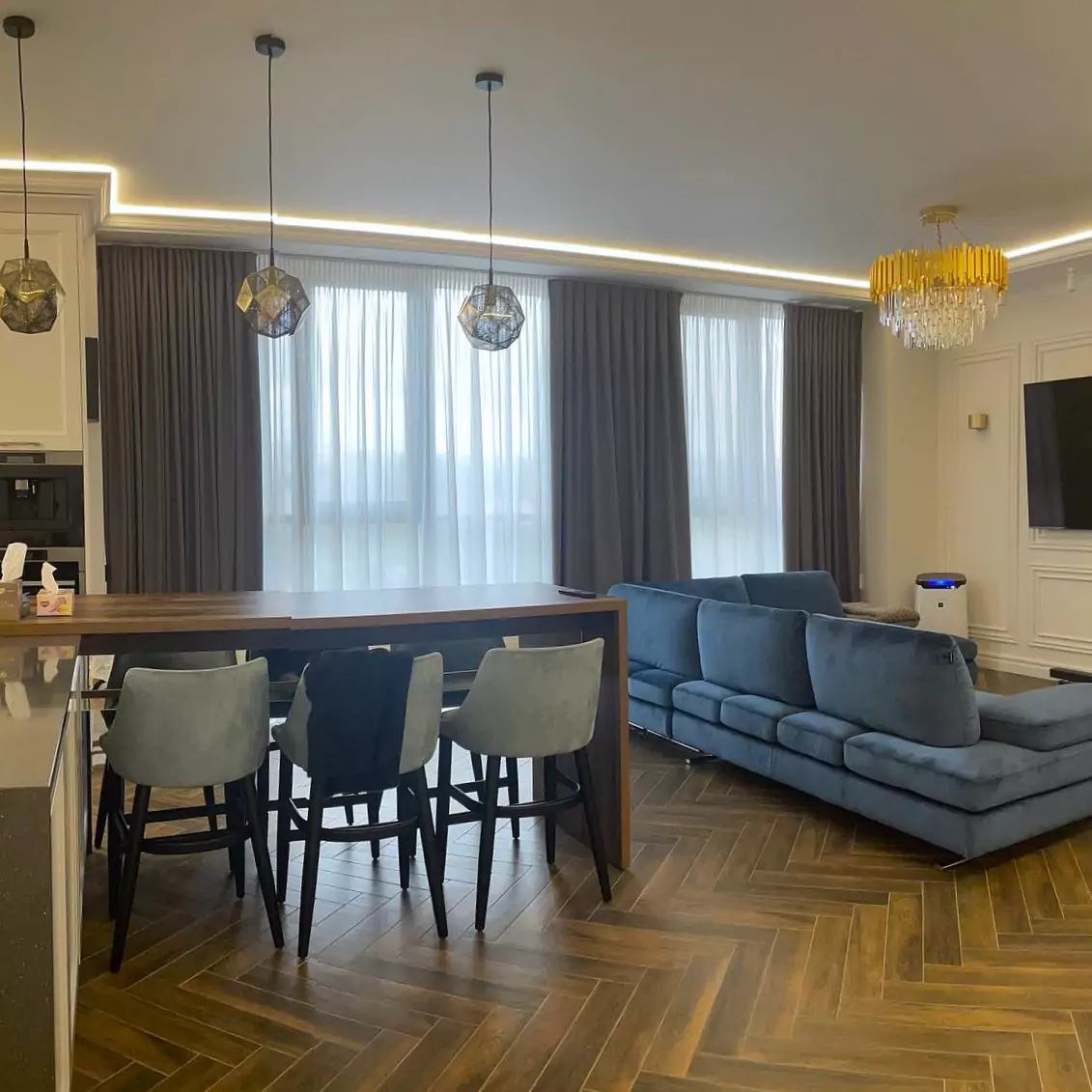 În această galerie prezentăm proiecte realizate în locuințe, apartamente, birouri în Moldova, România și alte țări europene. Folosim doar materiale de calitate superioară — de la catifea luxoasă la inuri naturale — pentru a crea draperii care completează perfect fiecare interior.